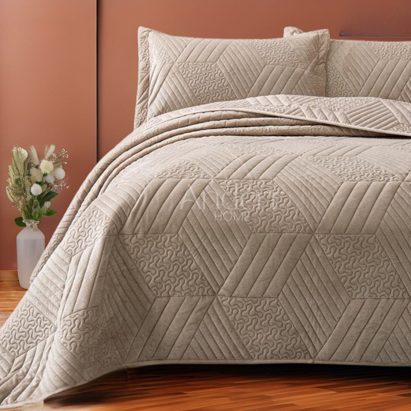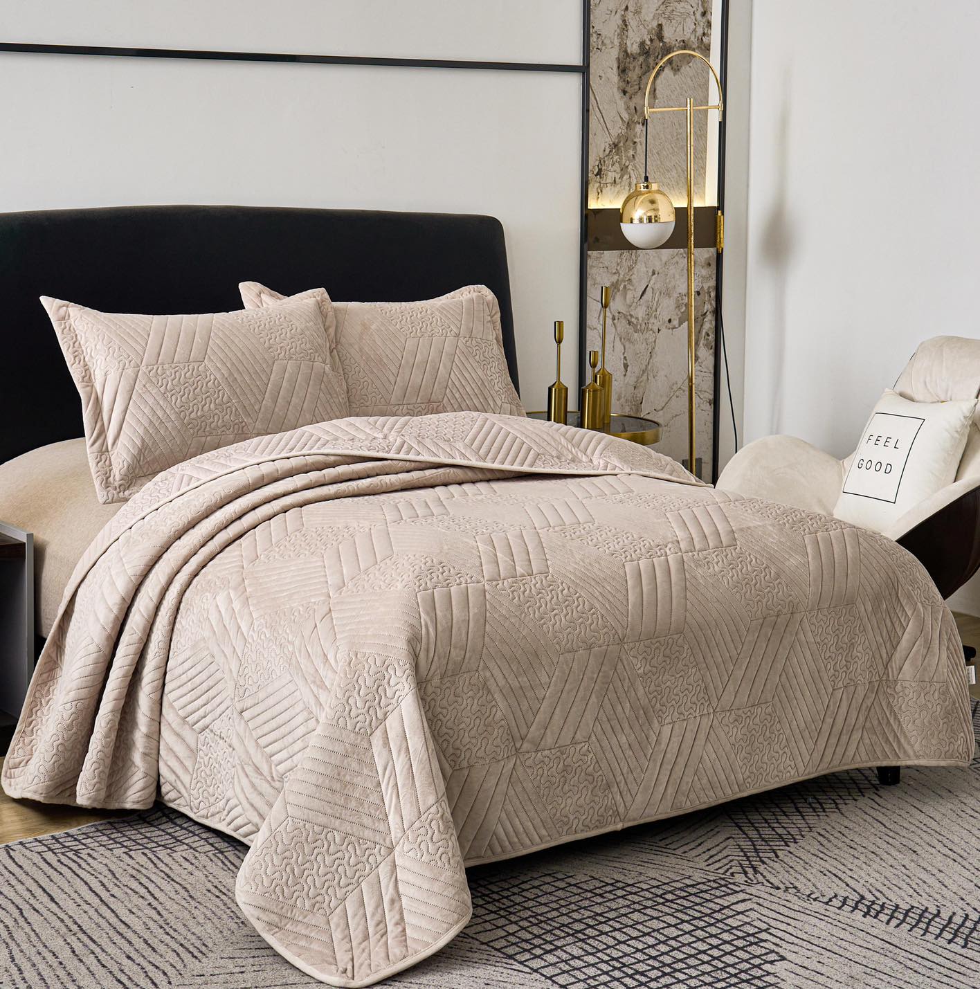Дома Прекривка Прекривка за две лица Кристално кадифе беж прекривка