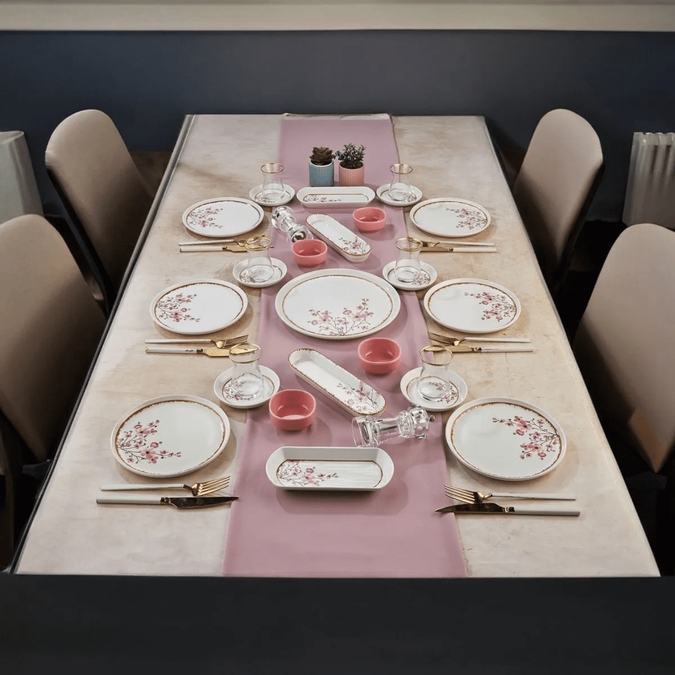 Комплет керамички чинии 21 парче Premium Pink - 6 лица
