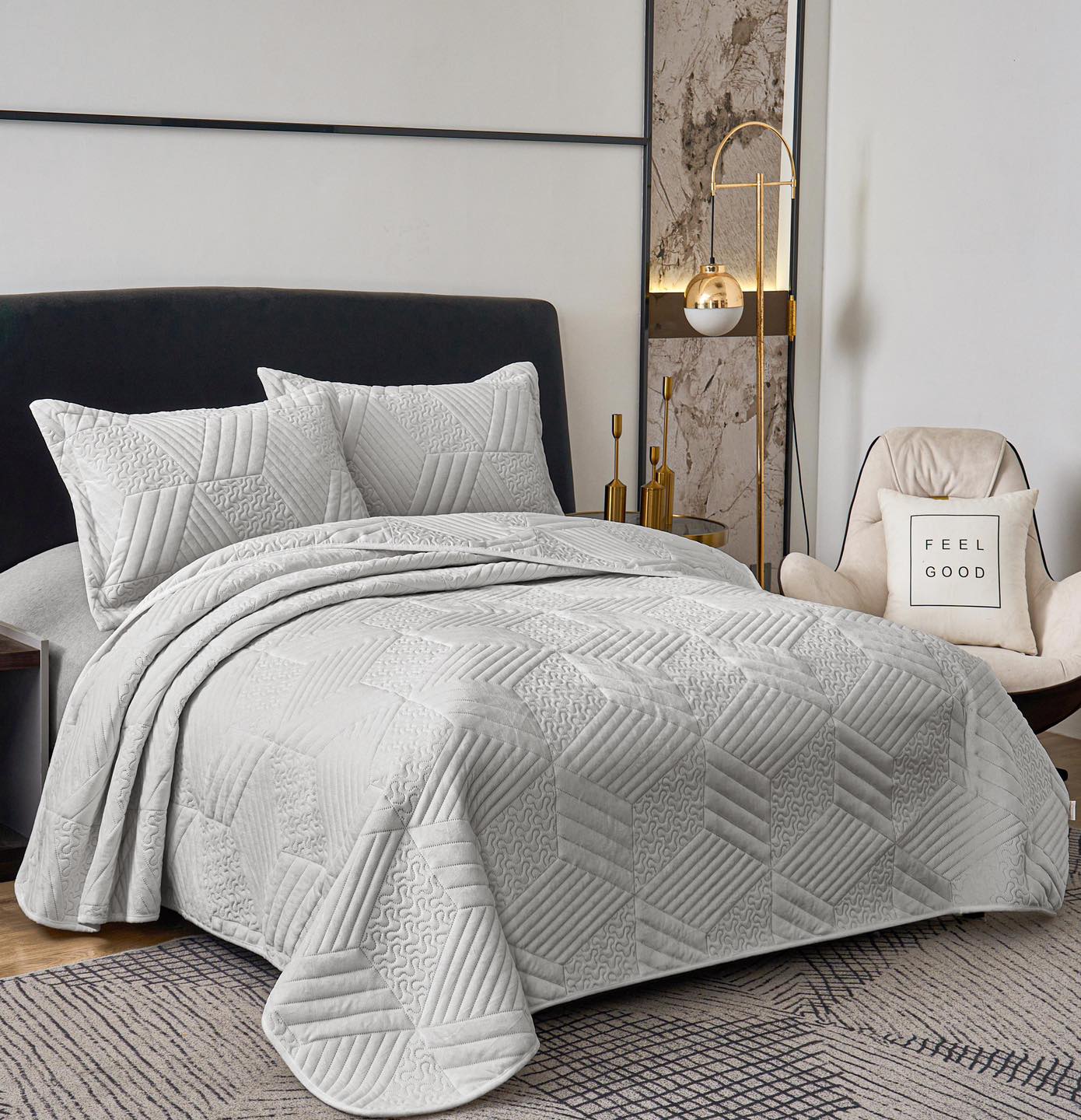 Kreu Mbulesë shtrati Mbulesë shtrati për dy persona Mbulesë shtrati Crystal Velvet Gri e Hapur